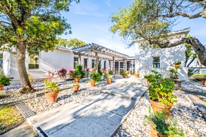 3 Bedrooms • 3 Bathrooms 3 Baths • Sleeps 4-8Welcome to La Ventana de Esperanza, a truly rare bayfront estate offering exceptional privacy, architectural character, and uninterrupted views of Aransas Bay. Tucked among more than fifty mature, windswept live oaks, this Mediterranean-style compound is one of the most distinctive waterfront homes in Rockport—designed for guests who value space, seclusion, and understated luxury.